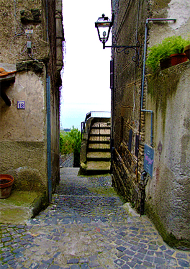 La "poesia dei vicoli", che, tenace, quasi miracolosamente riesce a sopravvivere, nonostante restauri maldestri e veri impiastri di ogni tipo, dettagli fuori luogo, materiali ipertecnologici, una bruttissima selva di tubazioni del gas, cavi elettrici e telefonici, sportelli, cassette e cassettoni di plastica, antenne vecchio stile e modernissime paraboliche e chi più ne ha ne metta... |