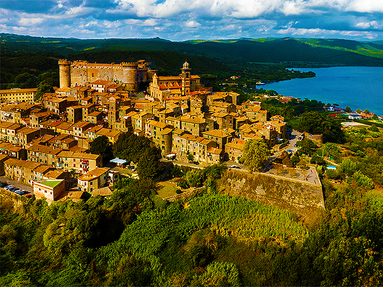 Il Castello Orsini-Odescalchi a Bracciano, oggi dimora storica privata 1952 aperta al pubblico da Livio IV, vanta una storia ben di otto secoli, costruito nel 1470 dalla potente famiglia romana degli Orsini sulla preesistente Rocca dei Prefetti di Vico del XIII sec, rilevato insieme al Ducato di Bracciano nel 1696 dai banchieri comaschi Erba-Odescalchi, discendenti di Carlo Magno, e tuttora di loro proprietà.