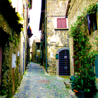 La "poesia dei vicoli", che, tenace, quasi miracolosamente riesce a sopravvivere, nonostante restauri maldestri e veri impiastri di ogni tipo, dettagli fuori luogo, materiali ipertecnologici, una bruttissima selva di tubazioni del gas, cavi elettrici e telefonici, sportelli, cassette e cassettoni di plastica, antenne vecchio stile e modernissime paraboliche e chi più ne ha ne metta... |